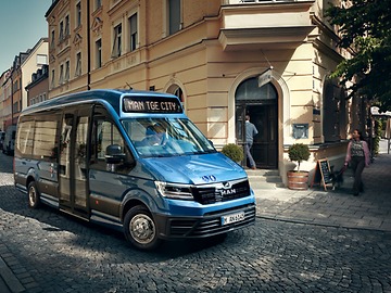 Confortable, spacieux et flexible : le MAN TGE City1) 2) pour une ambiance moderne dans le transport de ligne. Ce véhicule maniable aux multiples atouts offre un confort de conduite optimal dans la circulation urbaine grâce à son équipement parfaitement adapté aux passagers.