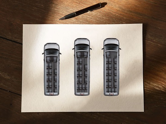 Dans l’habitacle, vos passagers disposent de sièges haut de gamme, confortables, avec ceintures de sécurité à trois points et dossiers réglables. Vous pouvez bien évidemment adapter le design de l’habitacle selon vos désirs, qu’il s’agisse des sièges ou du revêtement des sols. La climatisation de toit offre à vos passagers un confort de voyage supplémentaire.